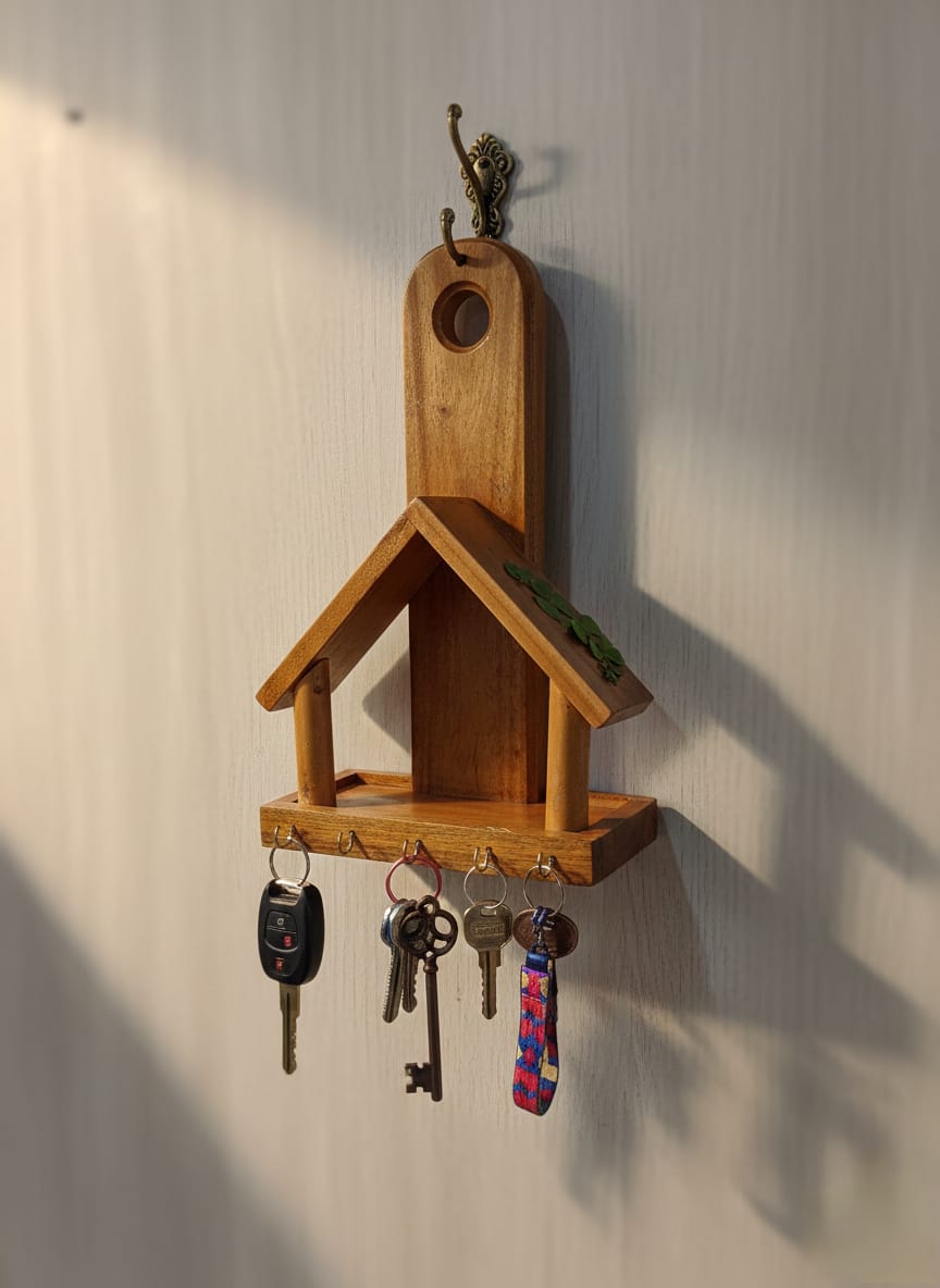 This wooden home key holder is crafted from natural wood and designed to keep your space neat and organized. Ideal for hanging keys, small accessories, and daily essentials, it also works as a simple decor piece for your wall.