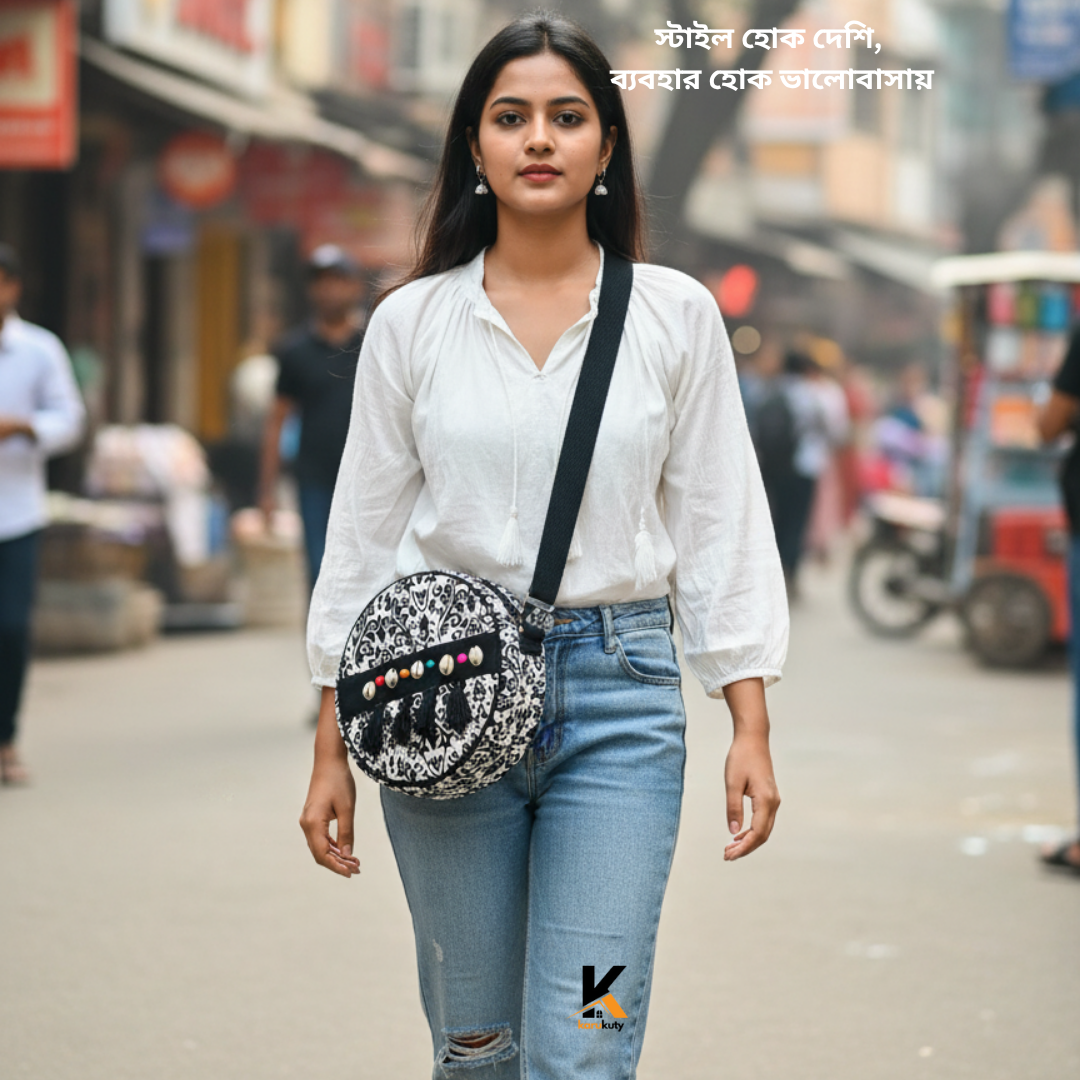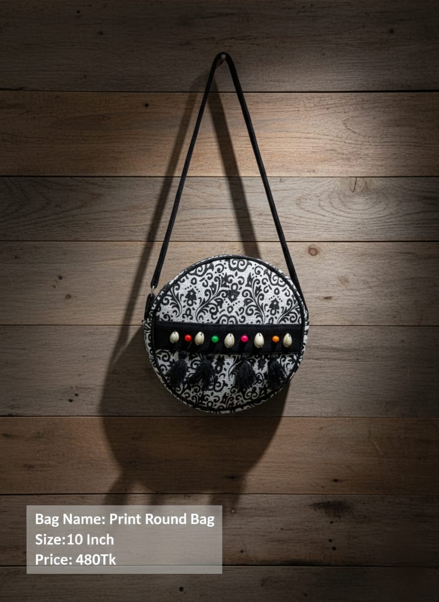 This stylish round bag combines functionality with a modern design. Made from durable materials, it features a spacious main compartment perfect for daily essentials. The bag’s vibrant printed pattern adds a unique touch, making it a standout accessory for any outfit. Lightweight yet sturdy, it’s ideal for casual outings, shopping trips, or everyday use.