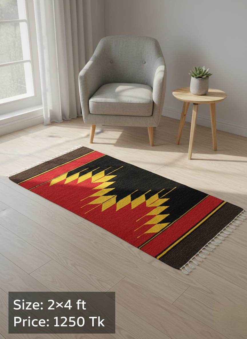 This 2 x 4 feet Shotoronji is a practical and traditional floor mat suitable for small spaces. Handwoven with care, it is durable, comfortable, and easy to maintain.