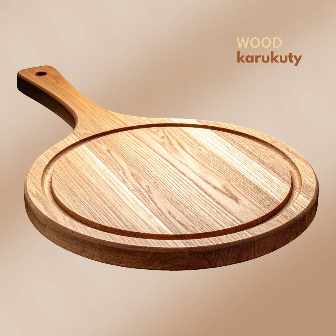 Serve, chop, and present your favorite foods in style with this premium wood round board. Perfect for pizzas, chopping, and kitchen decor.